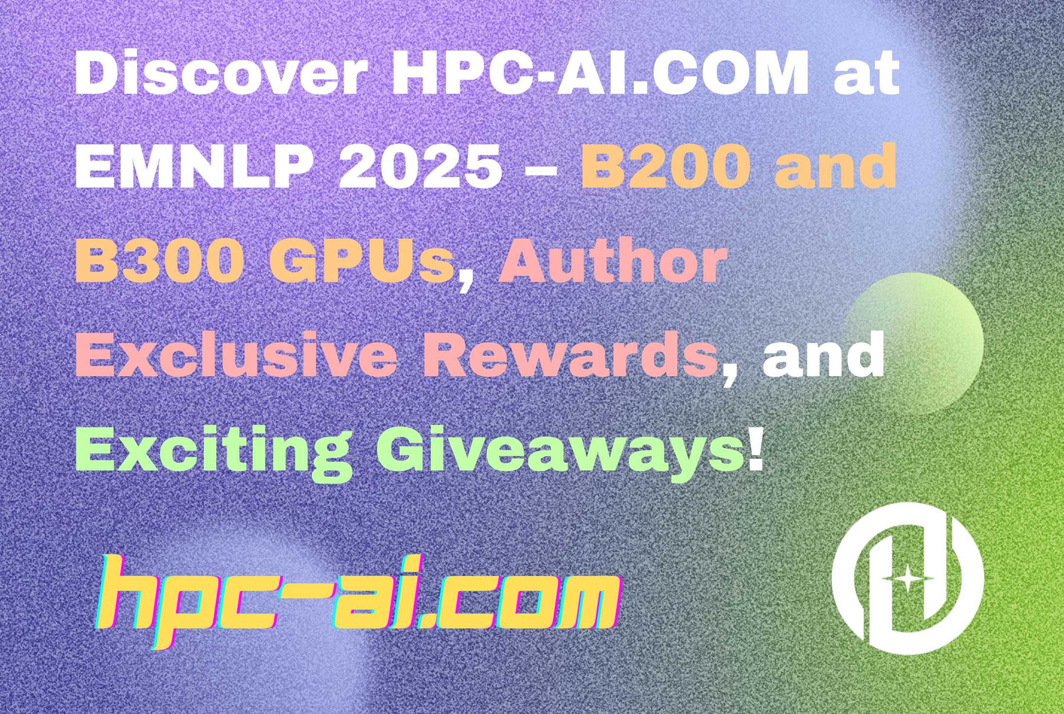 We are thrilled to announce that HPC-AI.COM will be a Diamond Sponsor at EMNLP 2025, taking place from November 4th to November 7th, 2025! This year, we are bringing our state-of-the-art GPU solutions to the conference, including the B200 and B300 GPUs, offering you an incredible opportunity to accelerate your AI research and development.
