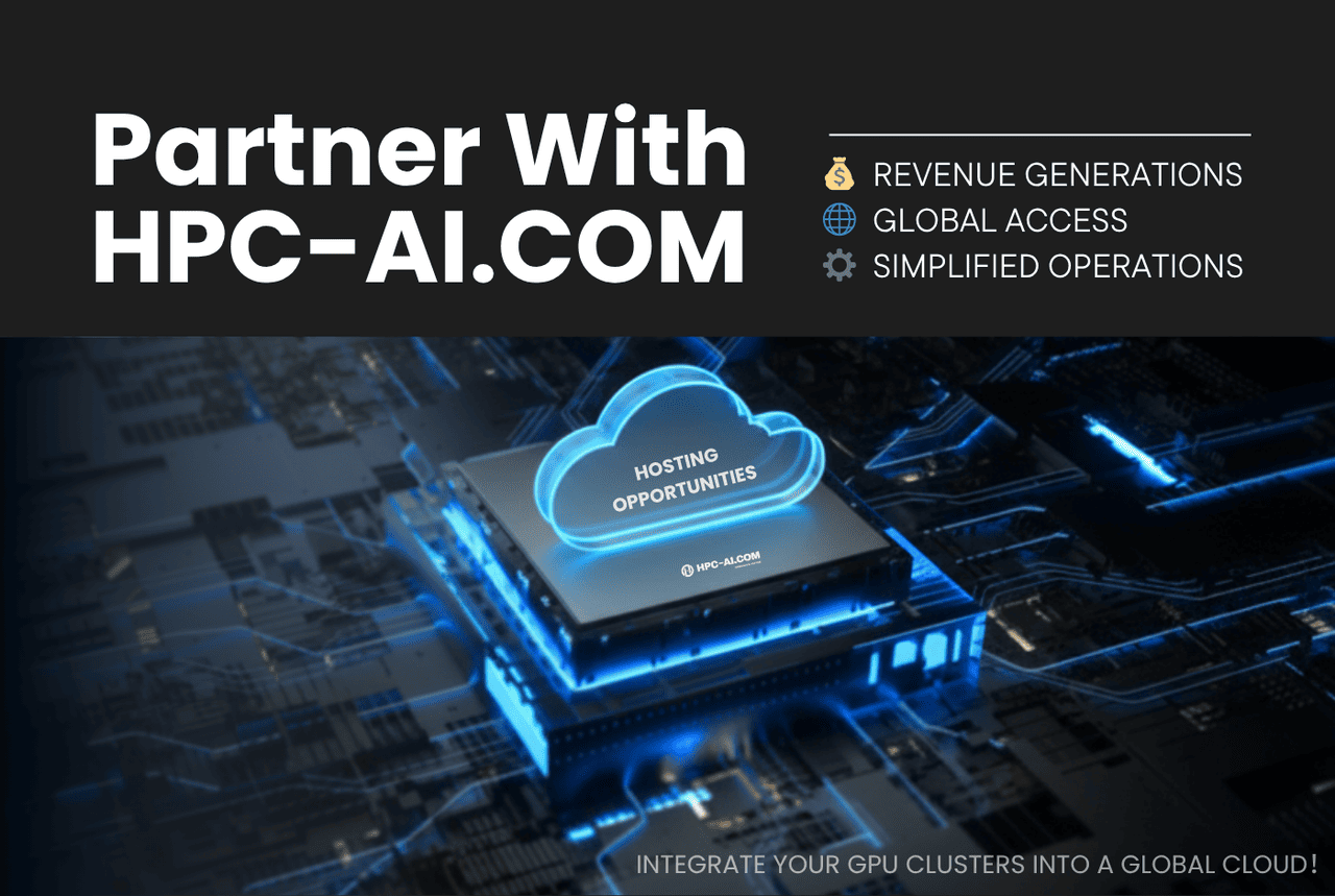 At HPC-AI, we're building the next-generation decentralized cloud platform - and we want you to be part of it. We're actively seeking partnerships with established data centers and infrastructure providers to integrate NVIDIA GPU resources into our growing ecosystem.